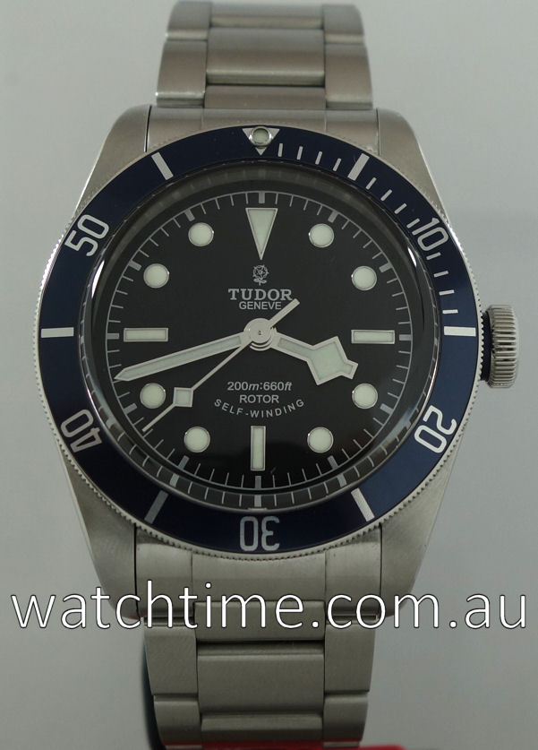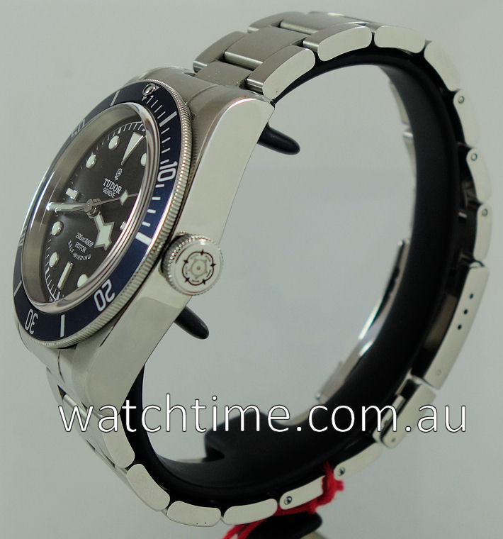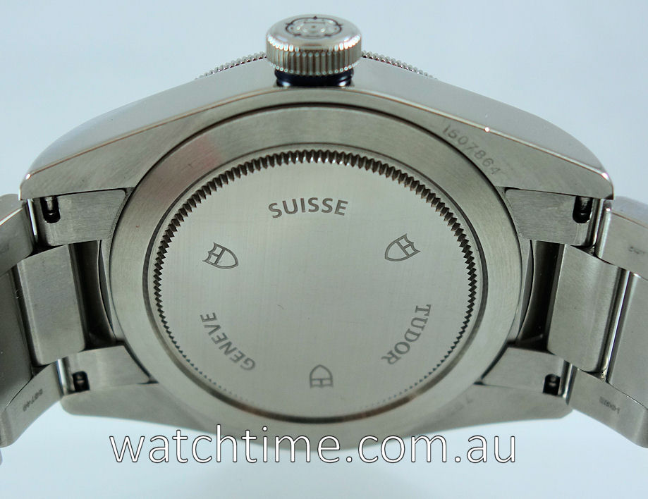 | Case | Brushed & polished Steel case with domed crystal. Screw-down “Big Crown” featuring the Tudor rose emblem and a coloured, anodized aluminium crown tube. Blue rotating bezel. |