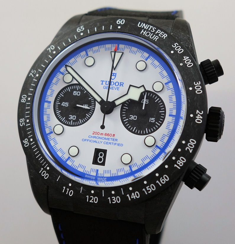 42mm Black Carbon-fibre case, White dial, Blue accents