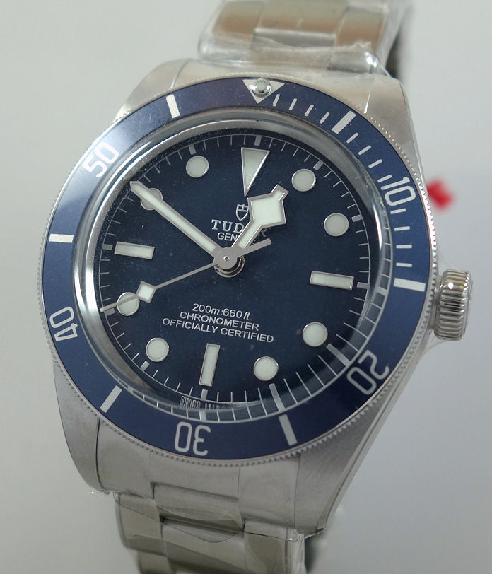 | Case | Brushed & polished Steel case with domed crystal. Screw-down “Big Crown” featuring the Tudor rose emblem and a coloured, anodized aluminium crown tube. Navy-blue rotating bezel. |