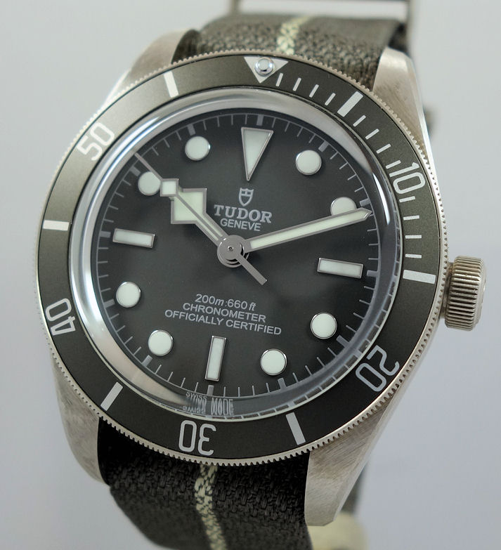 | Band | Taupe fabric strap and pin buckle by Tudor. |