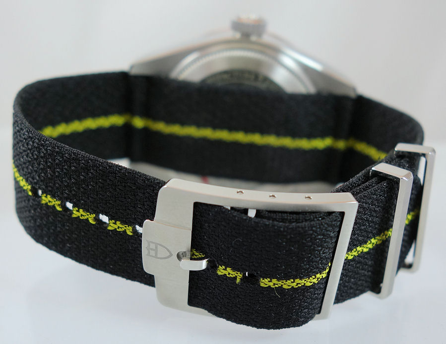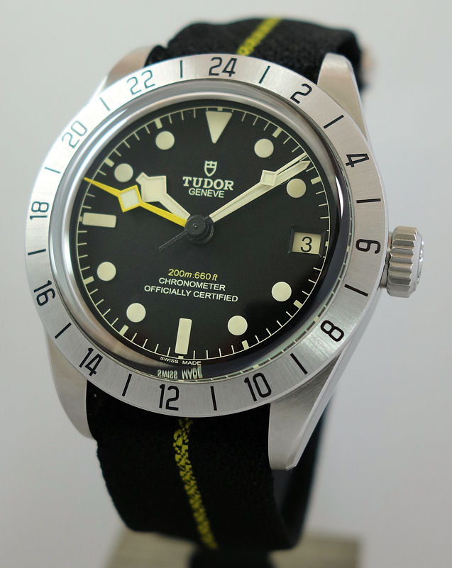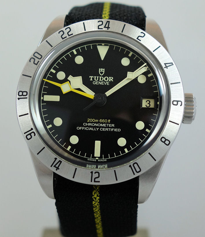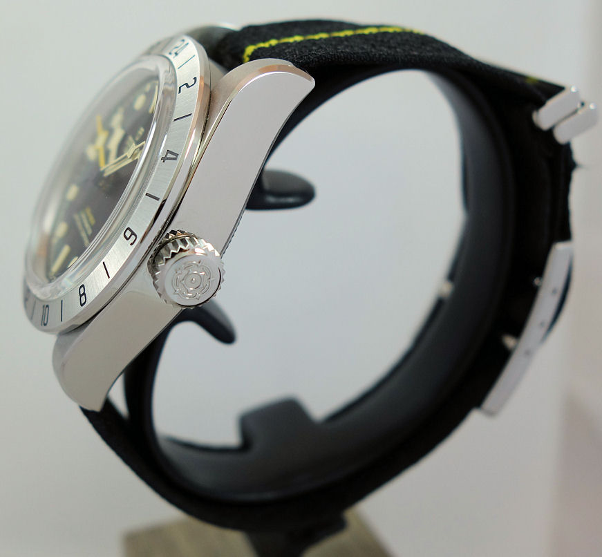 | Dial | Black, luminous hands and hour markings, yellow GMT had and date window at 3 h pos. |