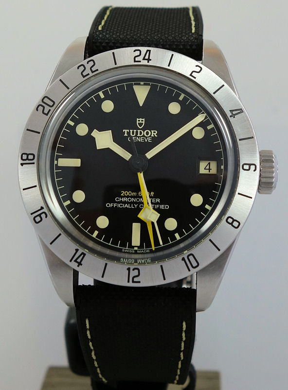 | Dial | Black, luminous hands and hour markings, yellow GMT had and date window at 3 h pos. |
