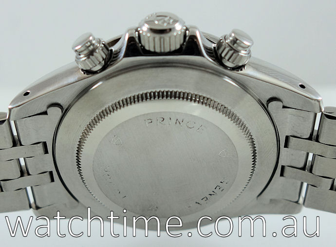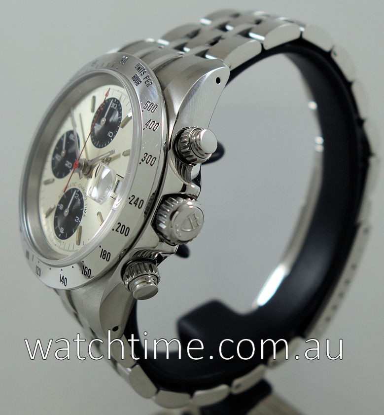 | Functions | Hours, Minutes, Small-seconds, Chronograph, Date and Tachymetre scale. Water resistant. |