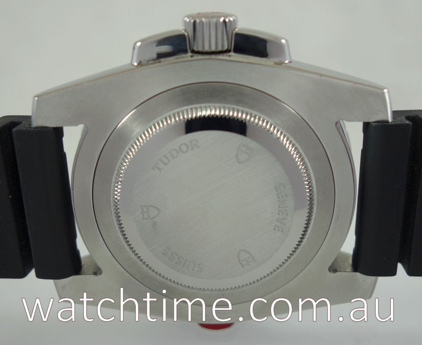 | Band | Black Rubber strap with wave pattern design and steel-pin buckle by Tudor. |