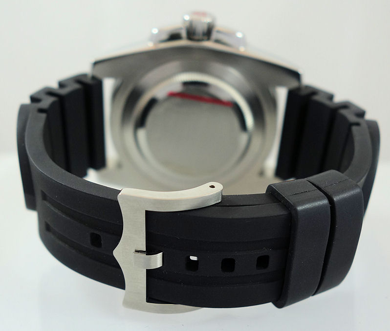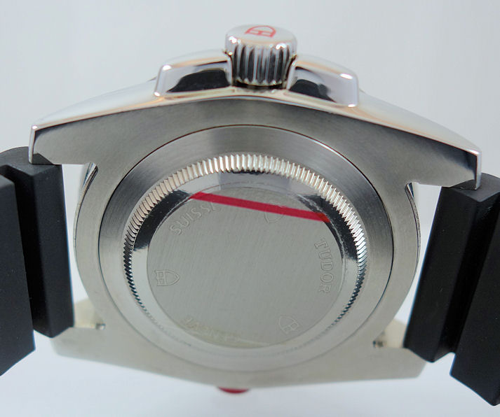 | Band | Black Rubber strap with wave pattern design and steel-pin buckle by Tudor. |