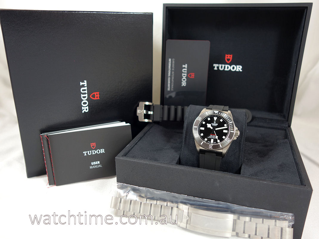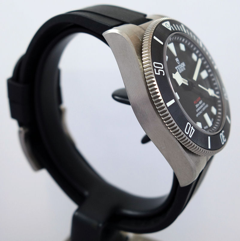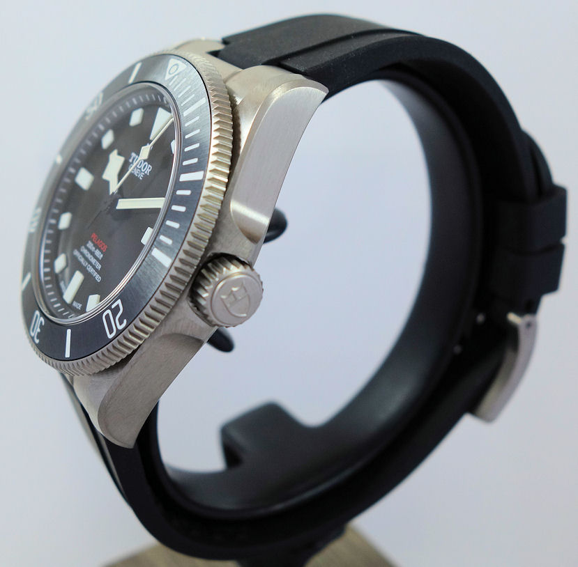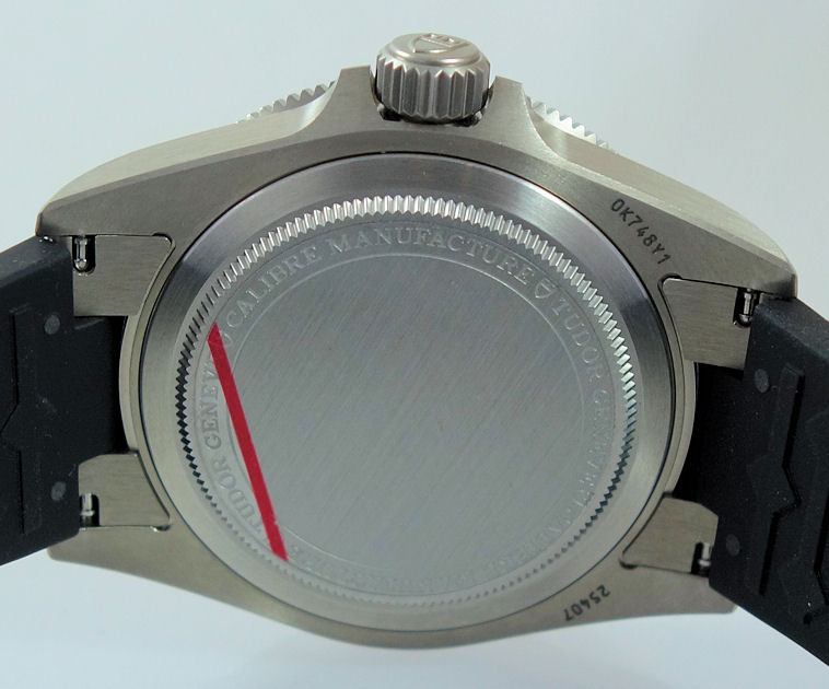 | Band | Titanium bracelet with TUDOR “T-fit” folding clasp, safety catch and diver’s extension. Complimentary black rubber strap with pin buckle and diver’s extension. |