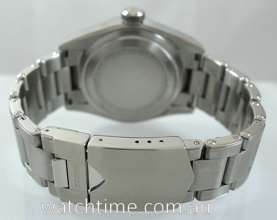 | Band | Stainless-steel riveted bracelet and flip-lock clasp by Tudor. |