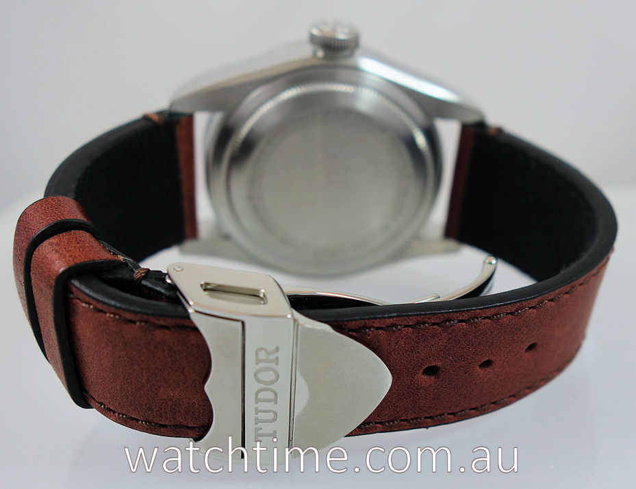 | Band | “Terra di Siena” Brown leather strap and steel flip-lock clasp by Tudor. |