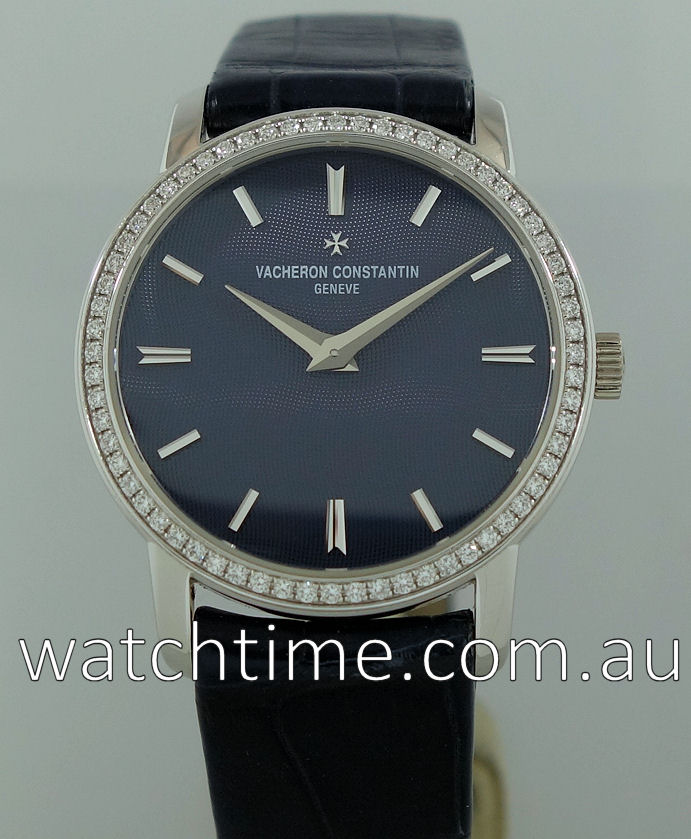 | Dial | Blue Guilloche dial with 18ct White Gold sword-shape hands. |