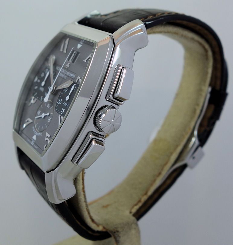 | Case | Stainless-steel tonneau case with flared lugs, polished bezel and rectangular chrono pushers. Curved Sapphire crystal glass. |