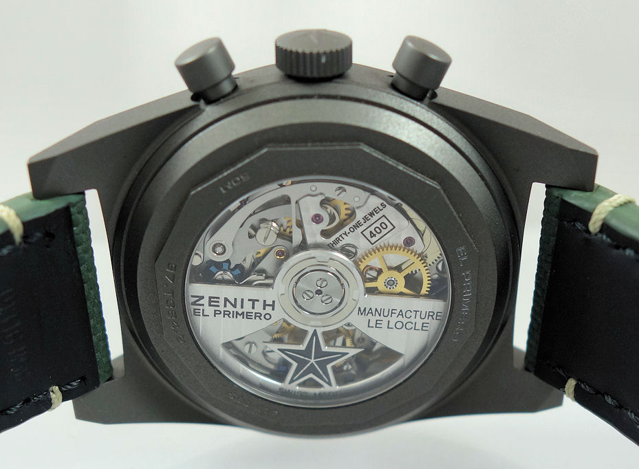 | Movement | Automatic column-wheel chronograph caliber El Primero 400. Power reserve 50 hours. |